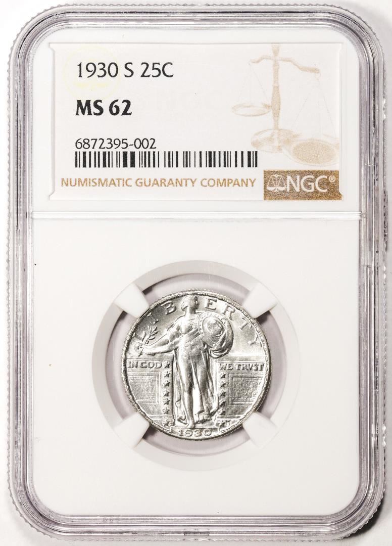 One 1930-S Standing Liberty Quarter Coin NGC MS62. NGC Certified.