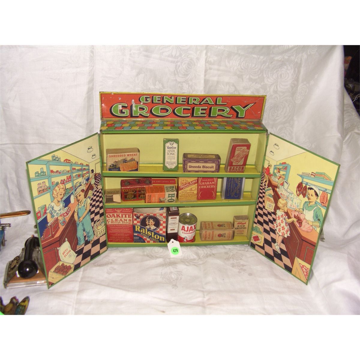 1930'S WOLVERINE TIN LITHO GROCERY STORE TOY with boxes