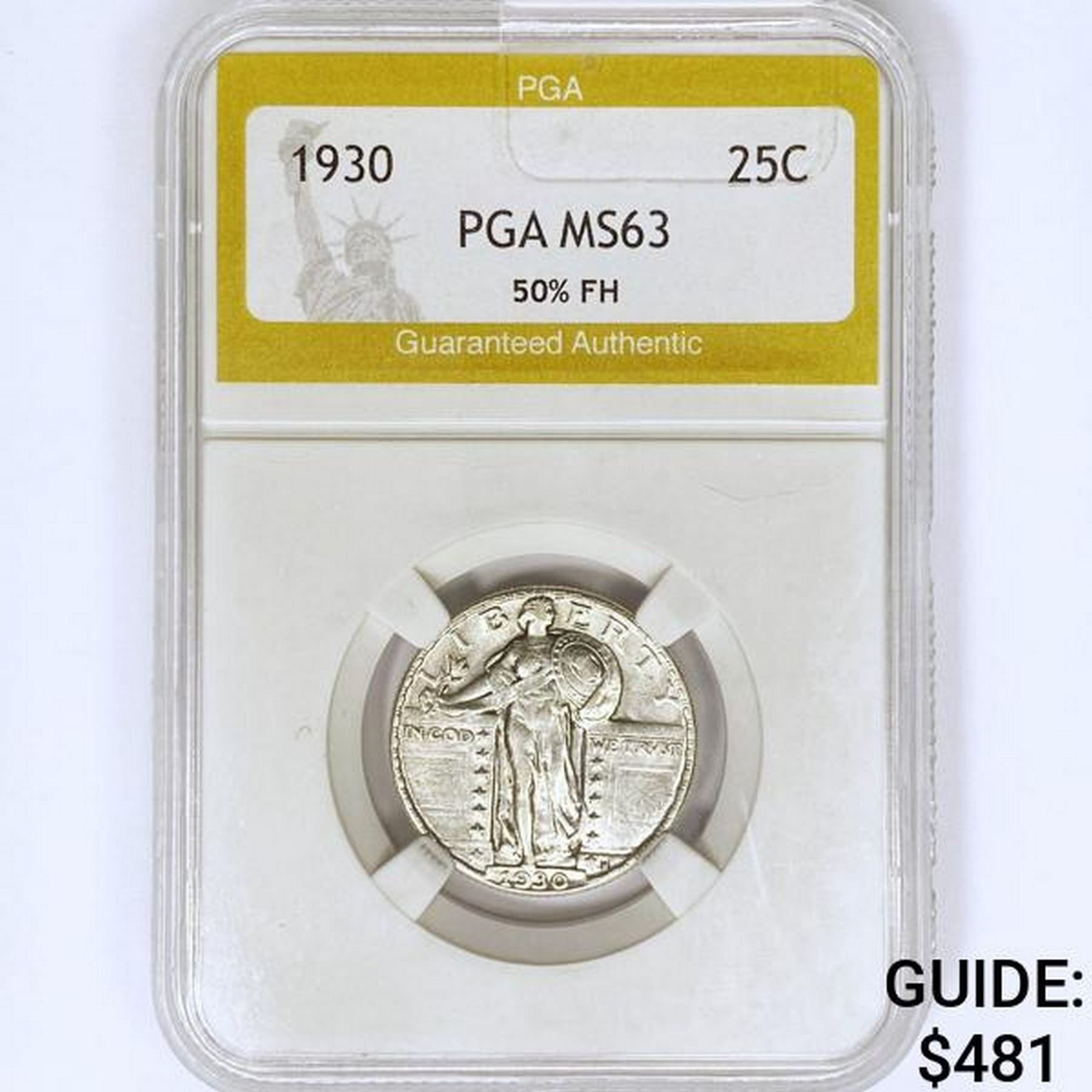 1930 Standing Liberty Quarter PGA MS63 50% FH