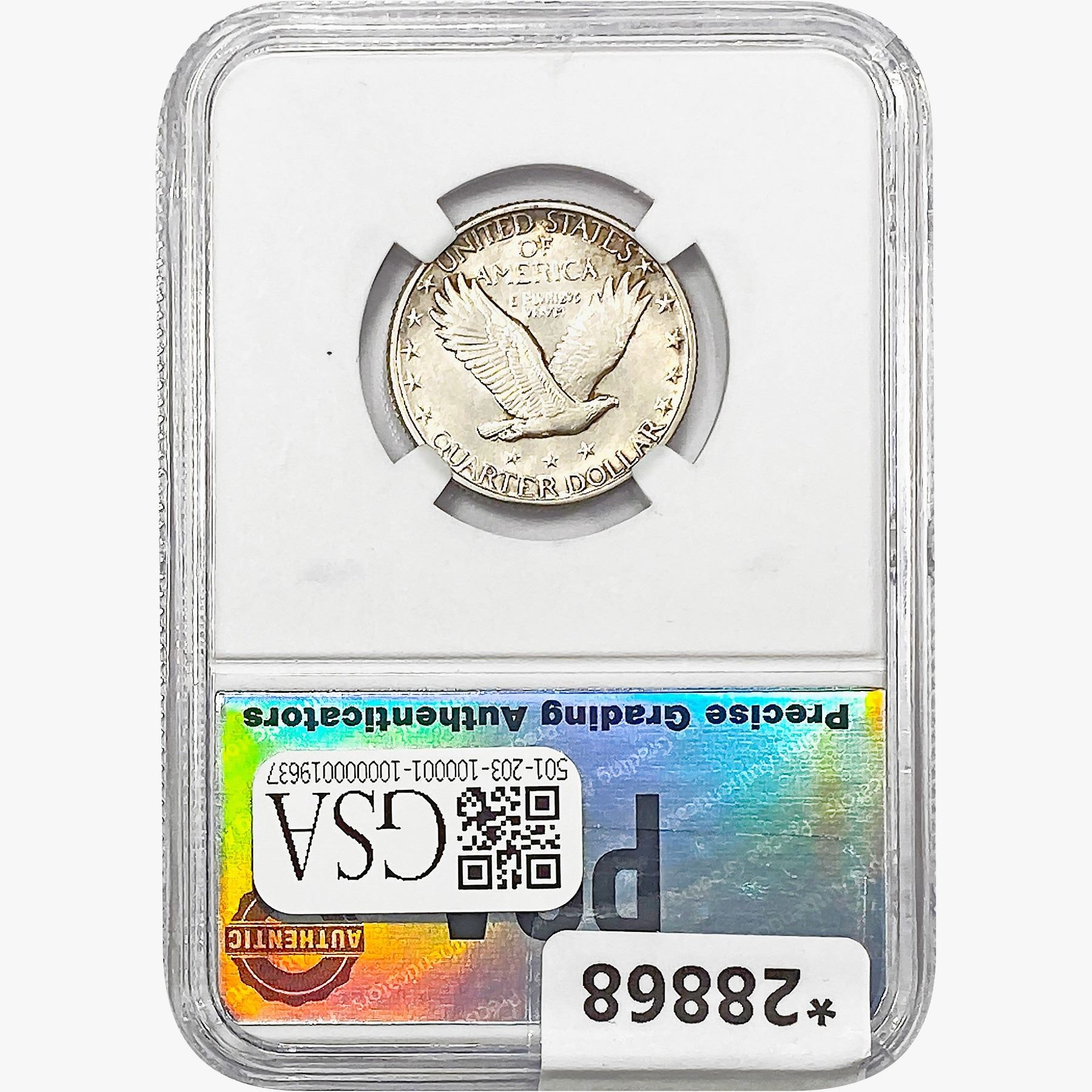 COINS AND CURRENCY LISTED IN GSA’S CATALOG AS GRADED AND ENCAPSULATED BY PCGS, NGC, ANACS, ICG, PCGS CURRENCY, PMG, PCGS BANKNOTE GRADING, CMC OR ANY OTHER THIRD-PARTY GRADING SERVICE ARE LIKEWISE SOLD “AS-IS” EXCEPT AS EXPRESSLY SET FORTH HEREIN. ALL THIRD-PARTY GRADING SERVICE GUARANTEES, INCLUDING AUTHENTICITY, ARE THE SOLE RESPONSIBILITY OF THE THIRD-PARTY GRADING SERVICE AND NOT WARRANTIES OR GUARANTEES OF GSA. BIDDERS SHOULD CONTACT THESE THIRD-PARTY GRADING SERVICES DIRECTLY WITH RESPECT TO ANY CLAIMS OR QUESTIONS THEY MAY HAVE CONCERNING THEIR GUARANTEES AND WARRANTIES. BIDDERS ACKNOWLEDGE AND AGREE THAT AUCTIONEER IS NOT BOUND BY OR LIABLE FOR ANY OPINION OR CERTIFICATION BY ANY THIRD-PARTY GRADING SERVICE. REMOVAL OF A PRODUCT FROM ITS PROTECTIVE CASING OR HOLDER OR ALTERATION OF ANY COIN HOLDER WAIVES ALL RIGHTS CONCERNING THE PRODUCT CONTAINED THEREIN.
