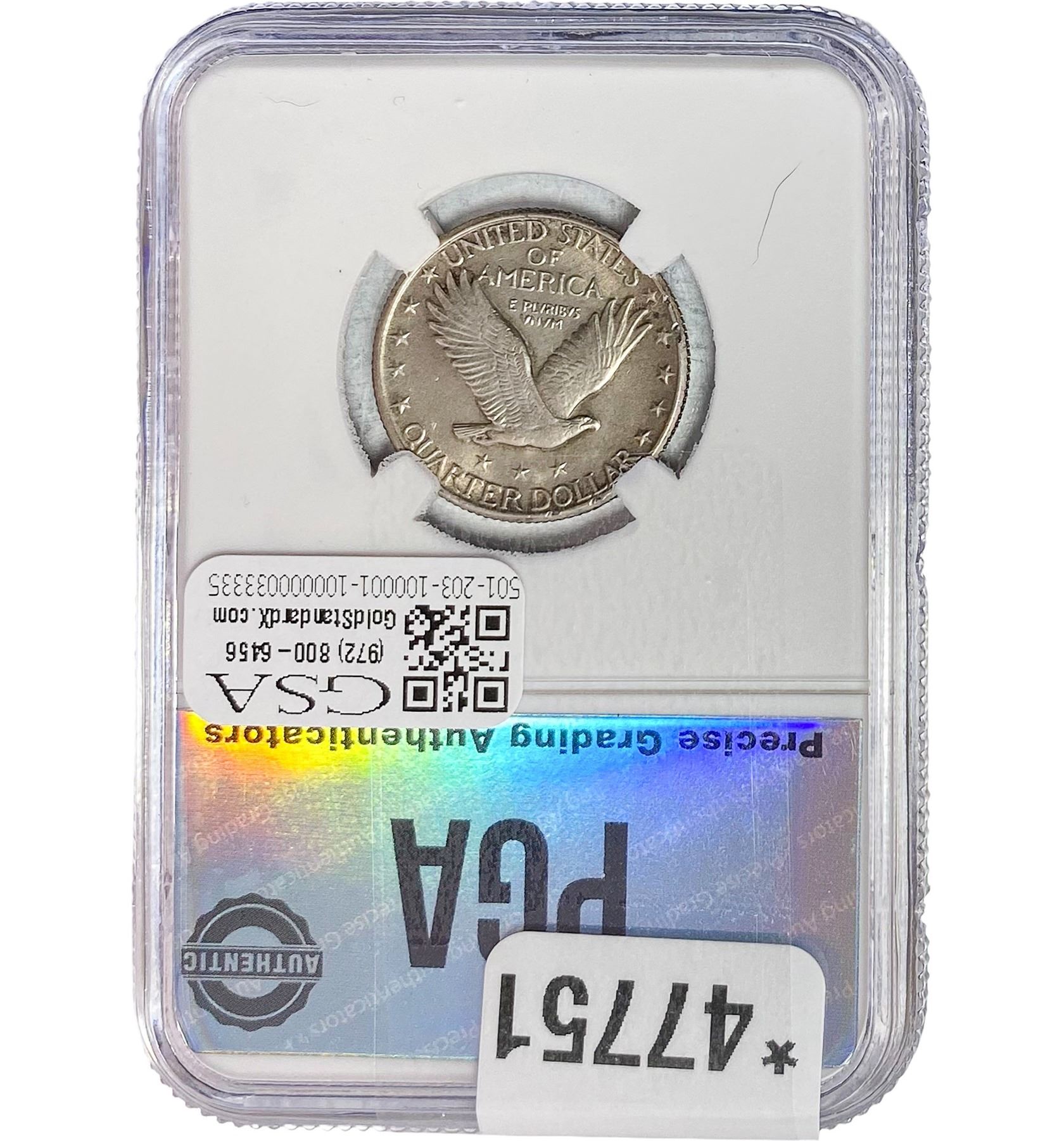 e. Coins sold referencing a third-party grading service are sold “AS IS” without any express or implied warranty, except for a guarantee by GSA that they are genuine. Removal or alteration of the holder, voids all of Bidder’s claims concerning that Product. Certain warranties may be available from the grading services and Bidders are referred to them for further details: Numismatic Guaranty Corporation (NGC), PO Box 4776, Sarasota, FL 34230, www.ngccoin.com/services/writtenguarantee.asp; Professional Coin Grading Services (PCGS), PO Box 9458, Newport Beach, CA 92658, www.pcgs.com/guarantee.html; ANACS, 6555 S. Kenton St., Ste. 303, Englewood, CO 80111; and Independent Coin Grading Co. (ICG), 7901 East Bellview, Ave., Suite 50, Englewood, CO 80111.