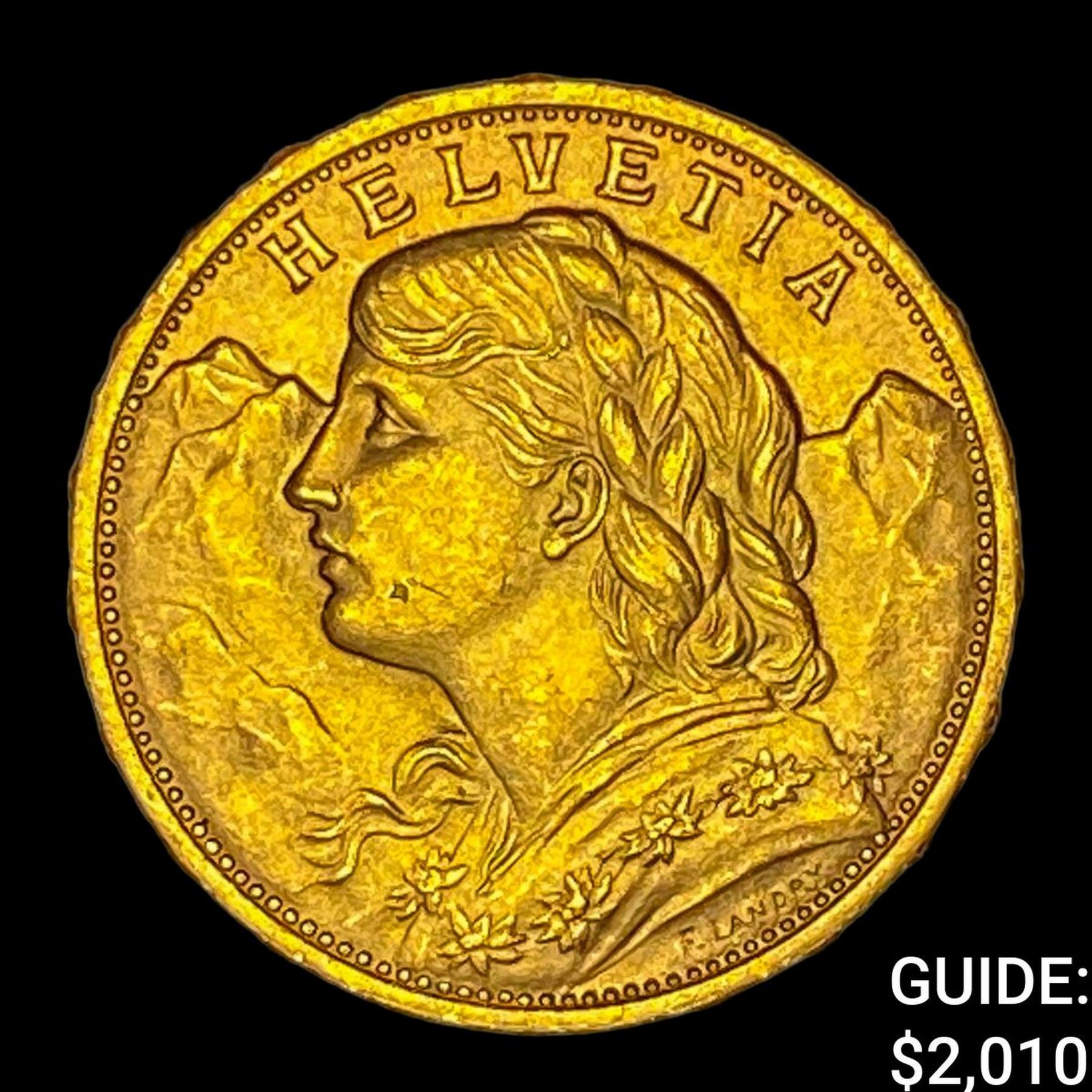 1930 Switzerland 20 Gold Francs .1867oz UNCIRCULATED
