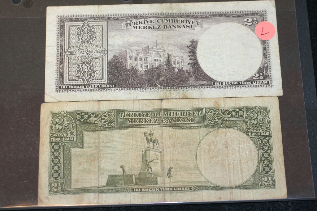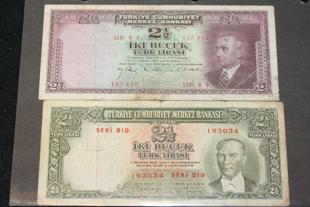1930 Turkey 2 1/2 Turkish Lira Foreign Bank Note, Lot of 2