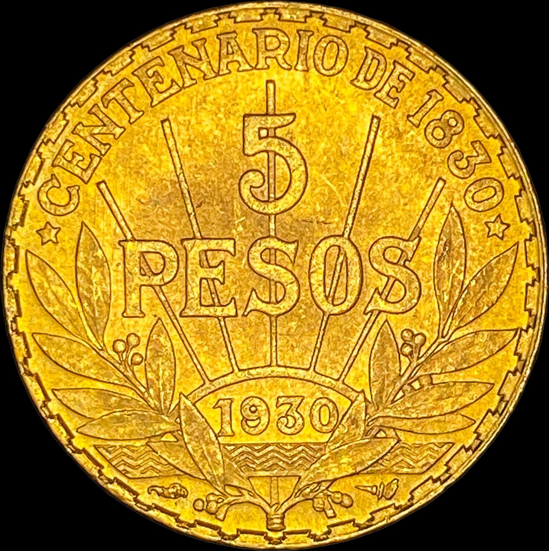 1930 Uruguay .2502oz Gold 5 Pesos UNCIRCULATED