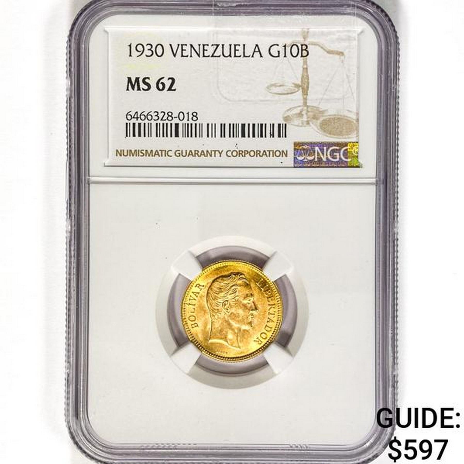 1930 Venezuela 10 Bolivares .0933oz. Gold NGC MS62