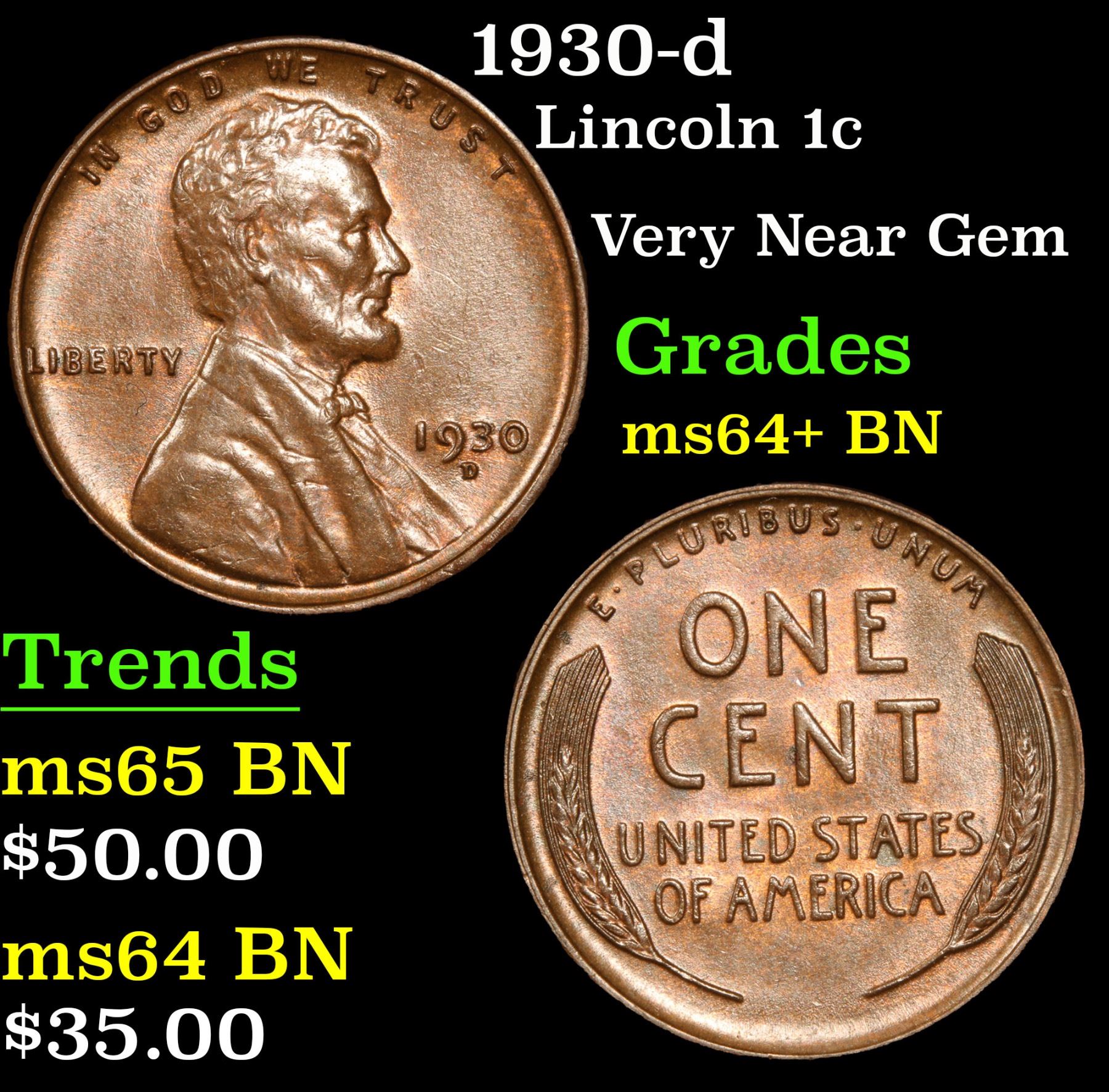 1930-d . Very Near Gem Lincoln Cent 1c Grades Choice+ Unc BN.
