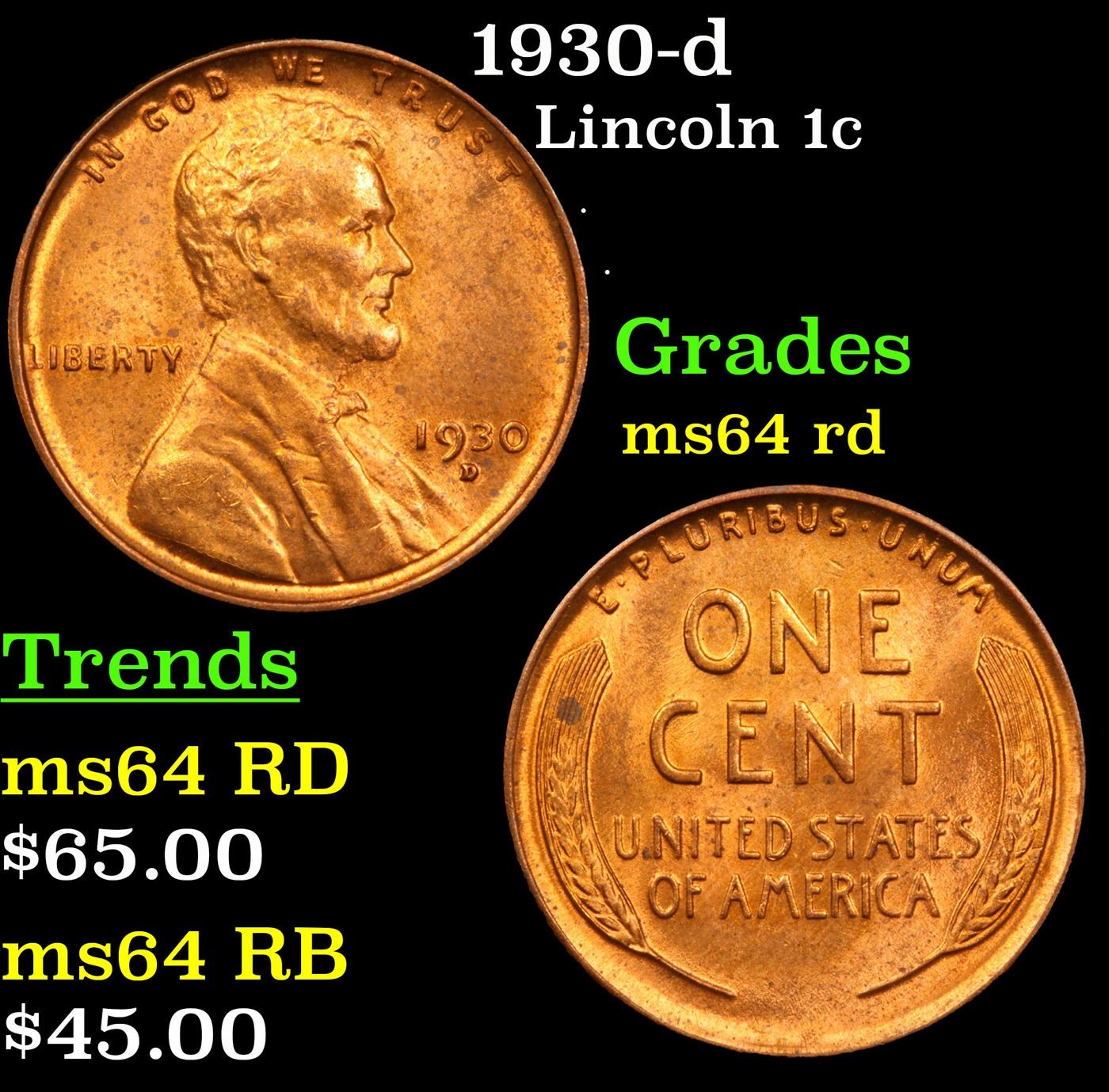 1930-d Lincoln Cent 1c Grades Choice Unc RD.