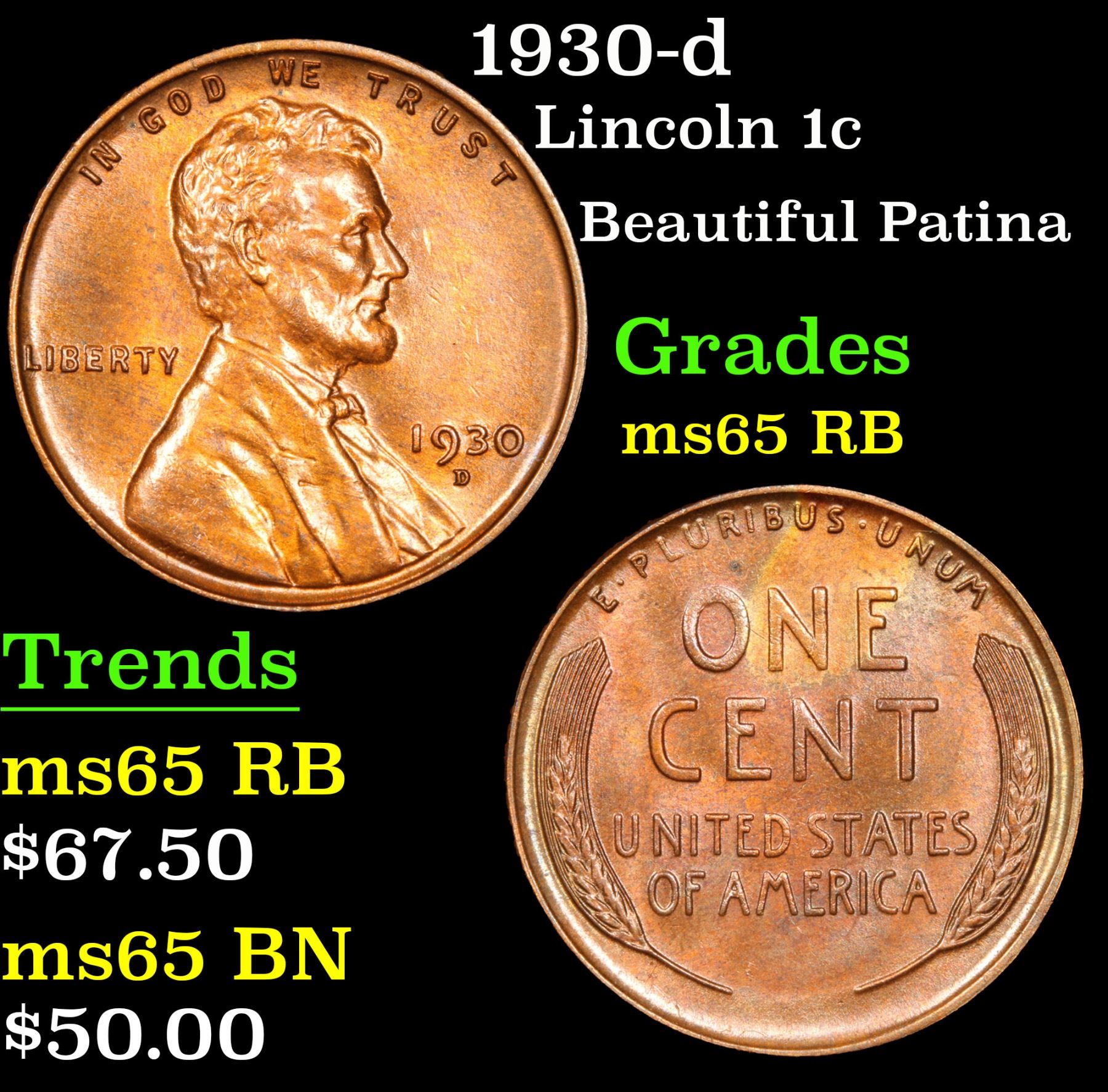 1930-d Lincoln Cent 1c Grades GEM Unc RB. Beautiful Patina A Corey's Pick