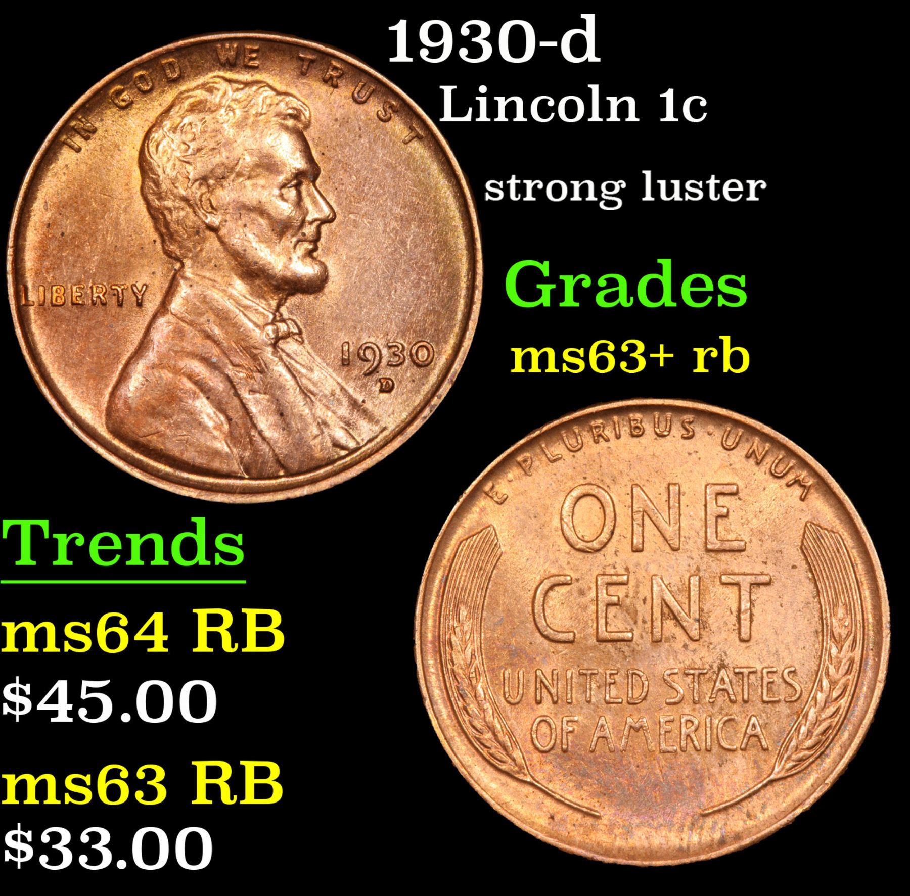 1930-d strong luster . Lincoln Cent 1c Grades Select+ Unc RB.