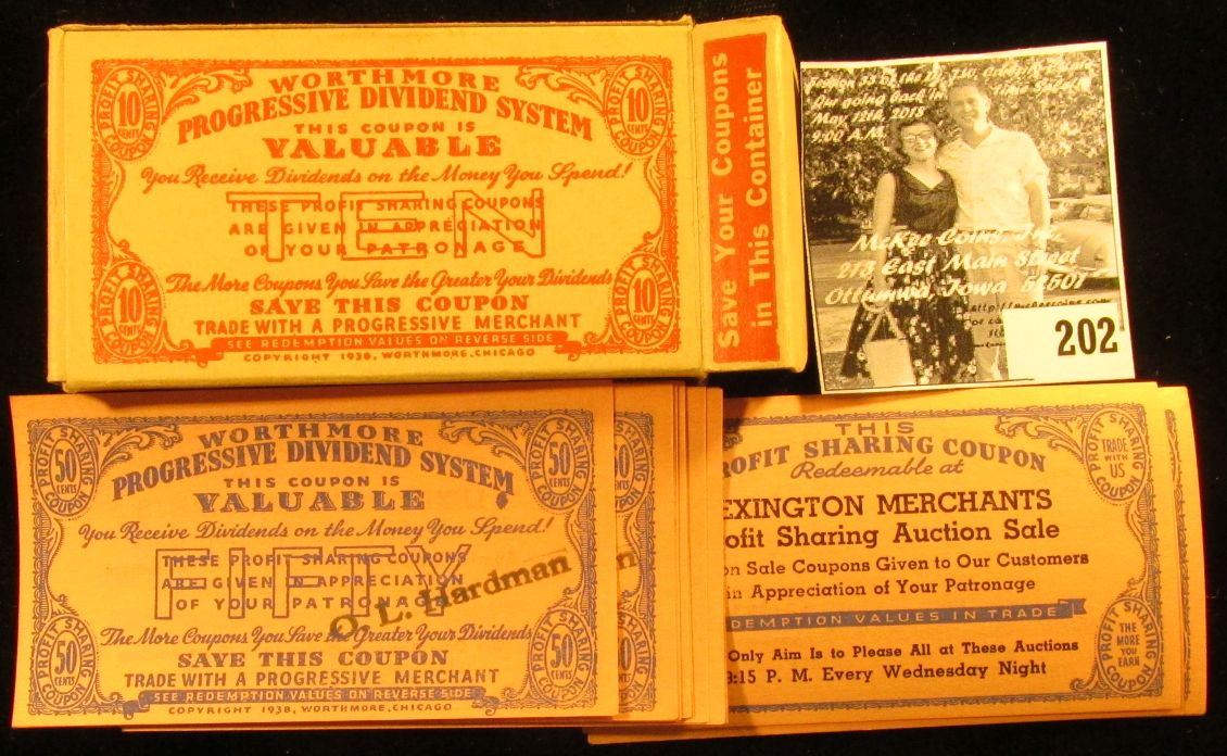 1930 era Original Box full of "Worthmore Progressive Dividend System"Coupons, seen rarely as individual scrip, never as a full box.