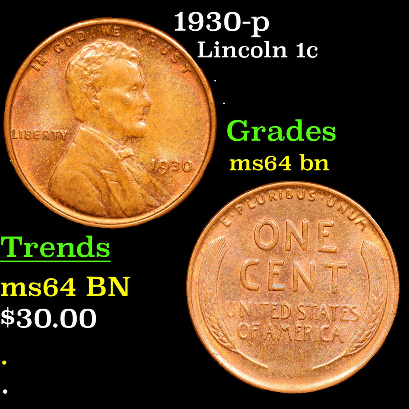 1930-p Lincoln Cent 1c Grades Choice Unc BN.