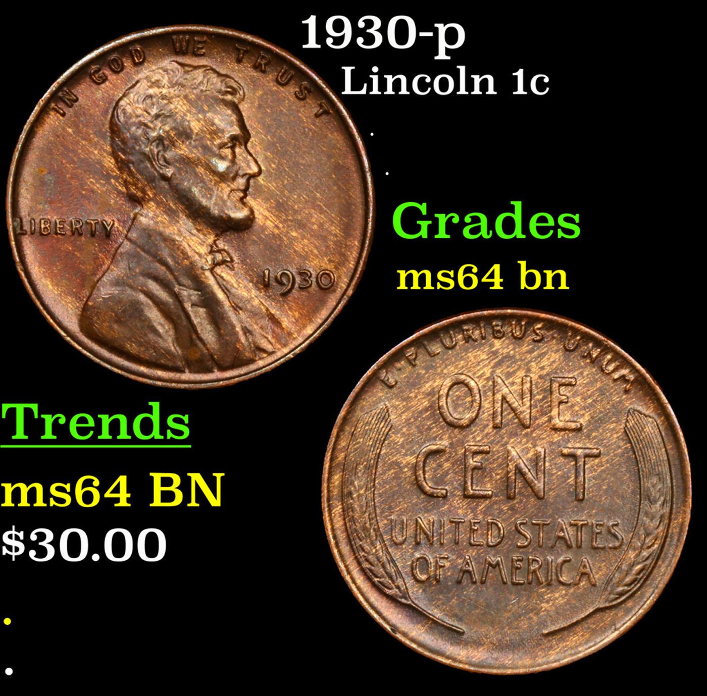 1930-p Lincoln Cent 1c Grades Choice Unc BN.