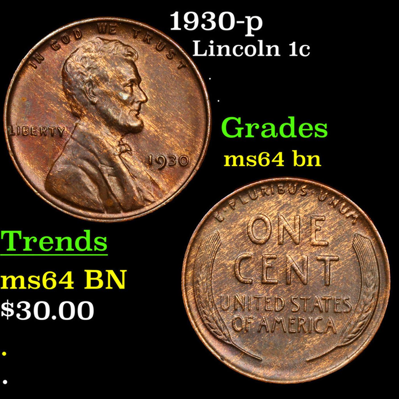 1930-p Lincoln Cent 1c Grades Choice Unc BN.