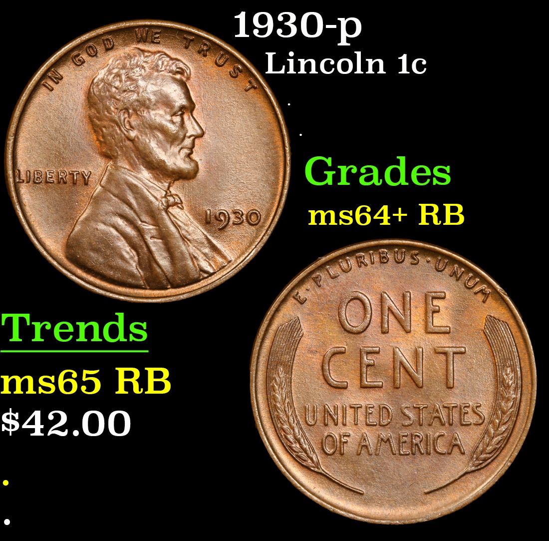1930-p Lincoln Cent 1c Grades Choice+ Unc RB.
