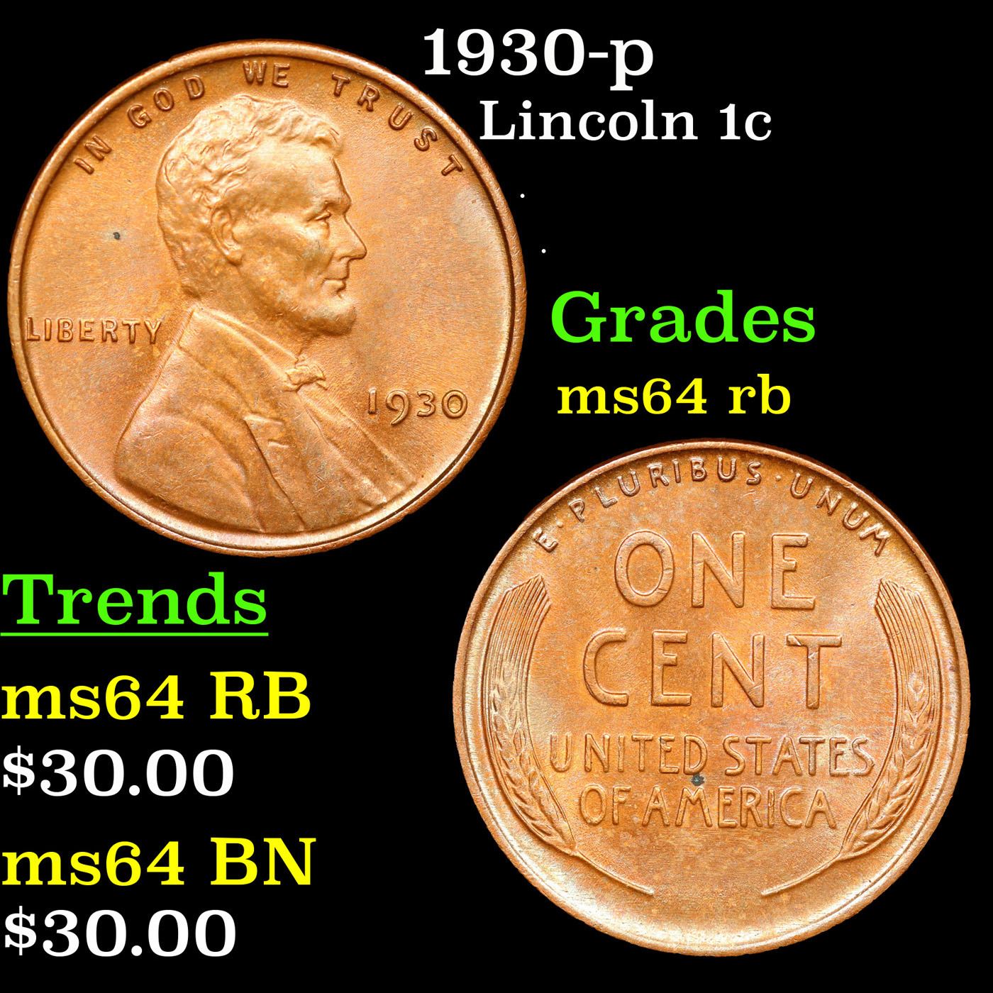 1930-p Lincoln Cent 1c Grades Choice Unc RB.