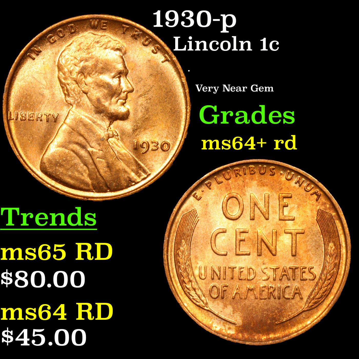 1930-p Lincoln Cent 1c Grades Choice+ Unc RD.