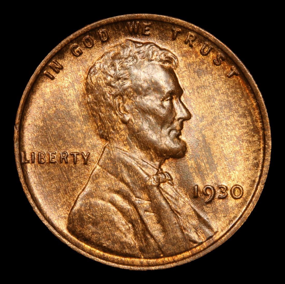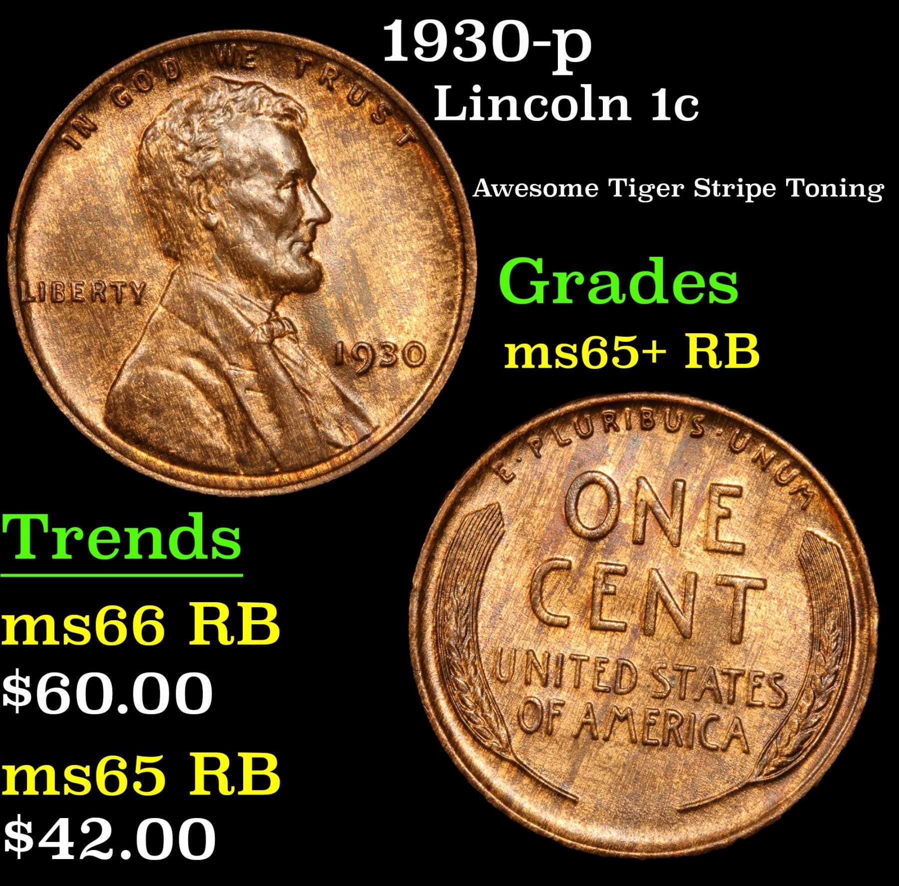 1930-p Awesome Tiger Stripe Toning . Lincoln Cent 1c Grades Gem+ Unc RB.