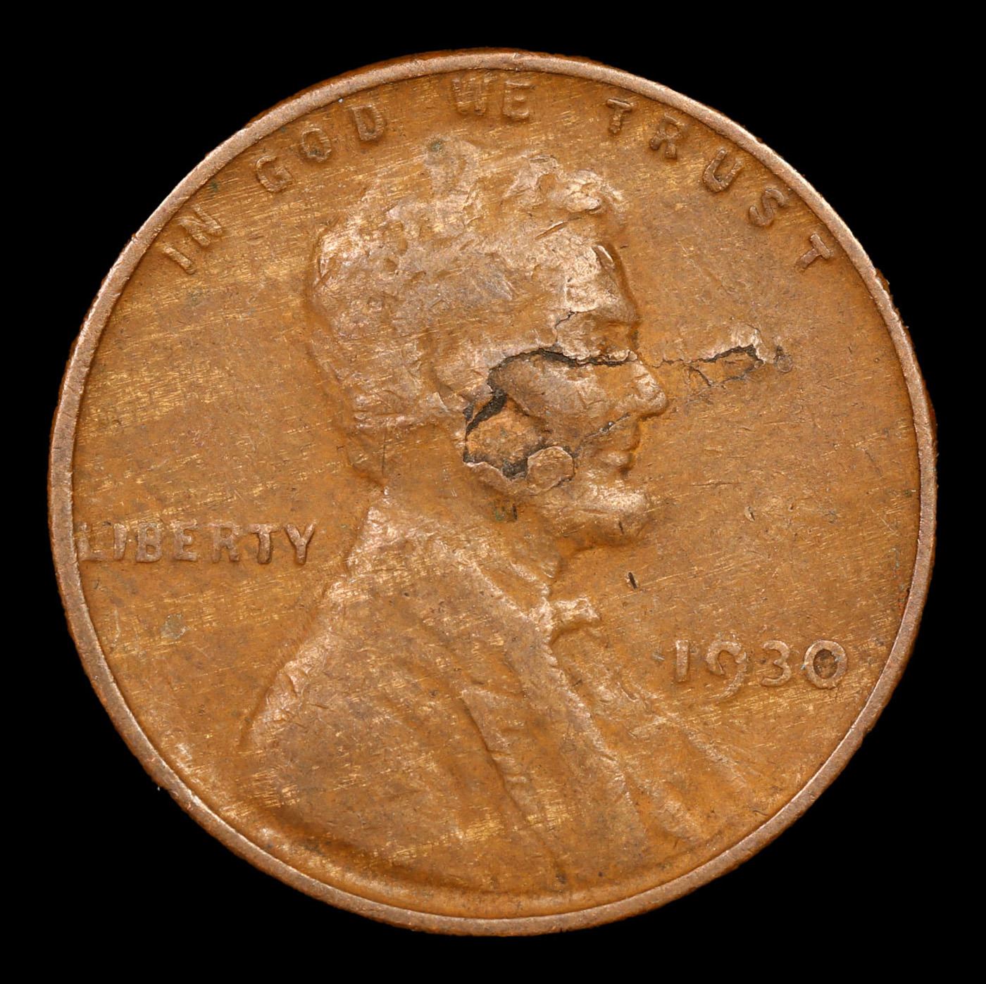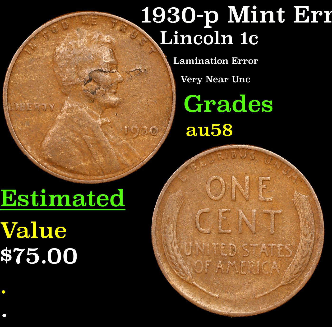 1930-p Mint Error Lincoln Cent 1c Grades Choice AU/BU Slider.