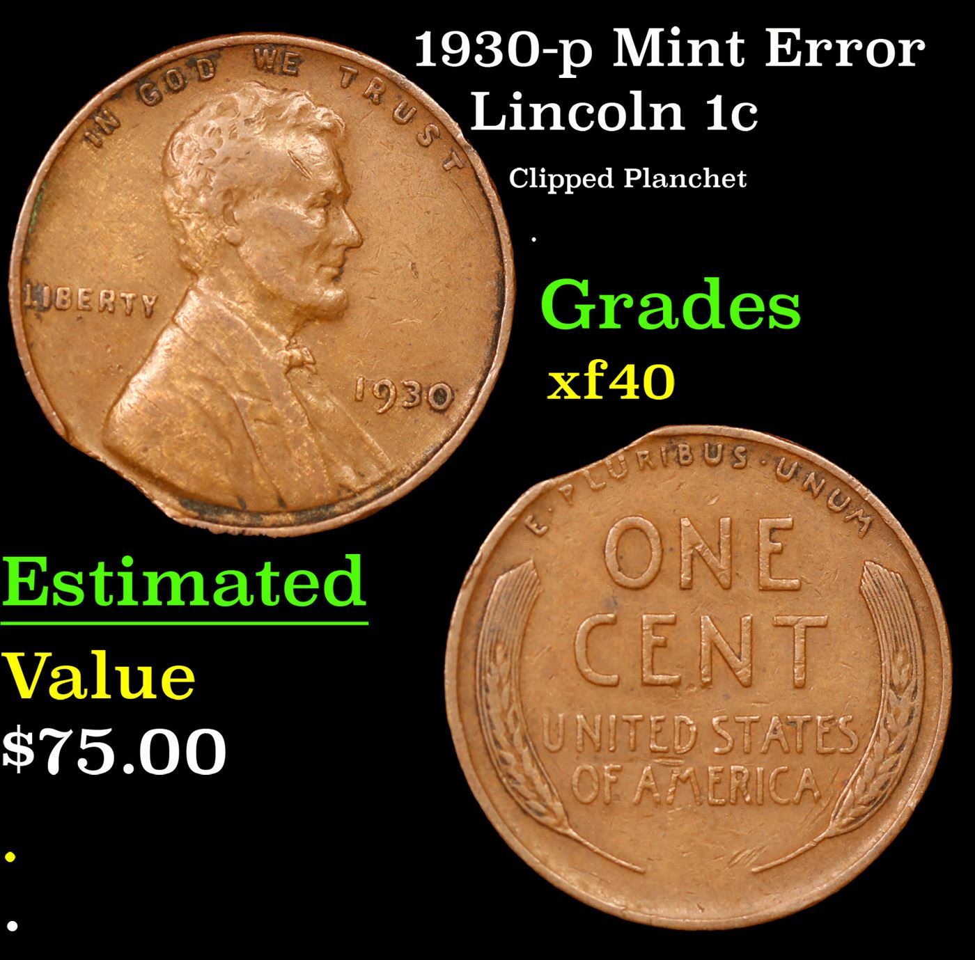 1930-p Mint Error Lincoln Cent 1c Grades xf.