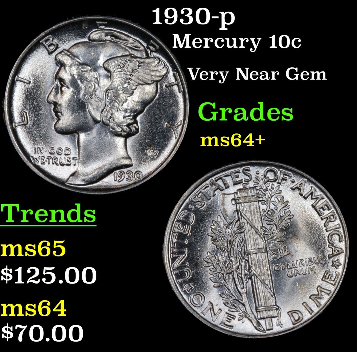 1930-p . Very Near Gem Mercury Dime 10c Grades Choice+ Unc.