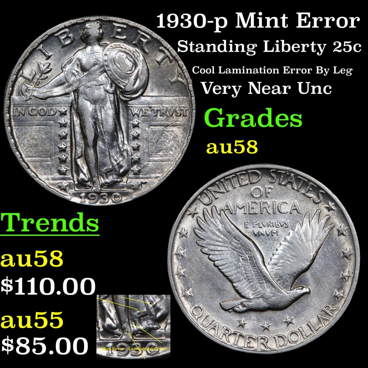 1930-p Mint Error Standing Liberty Quarter 25c Grades Choice AU/BU Slider.