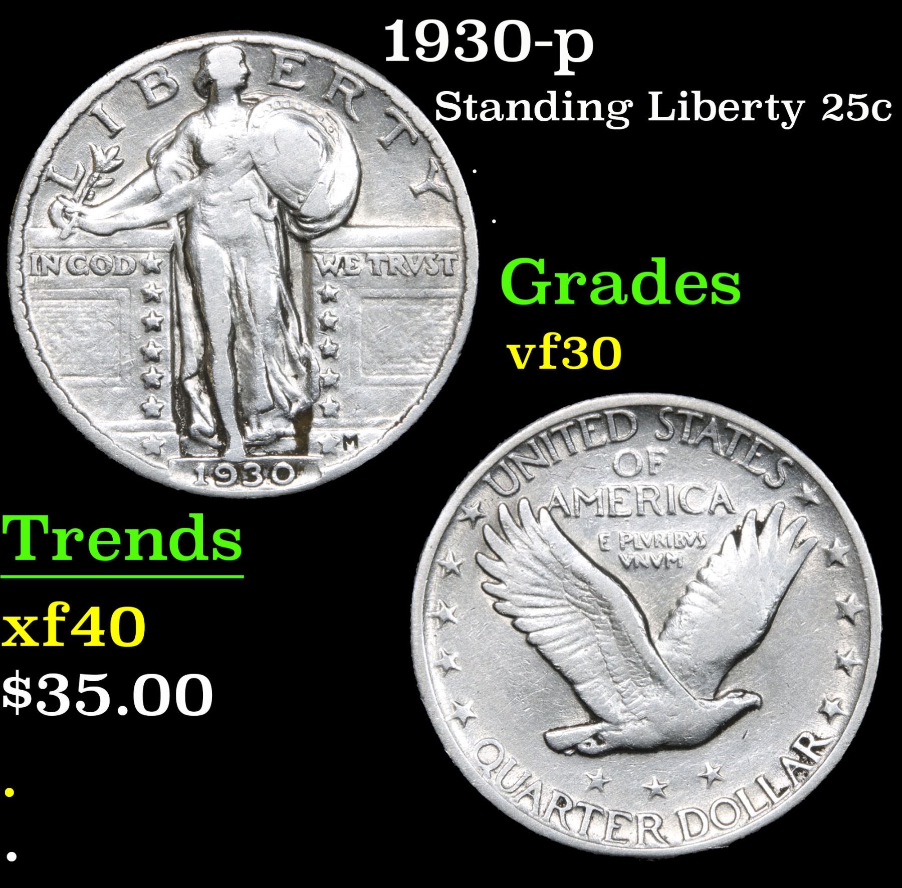 1930-p Standing Liberty Quarter 25c Grades vf++.