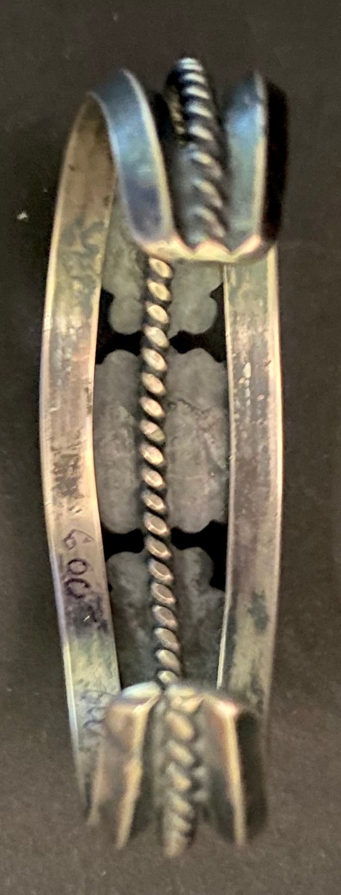 Bracelets measurements are opening, inside circumference, height. Weights are in Grams and are weighed to the best of our ability. The term signed means that, in our opinion, the signature is by the artist. All dating, Turquoise and hallmark attributions are to the best of our knowledge. Attributions are subjective and should be taken as such. Attributions in the description of any lot is left to the buyer to determine accuracy and the gallery is not responsible for any errors or omissions.