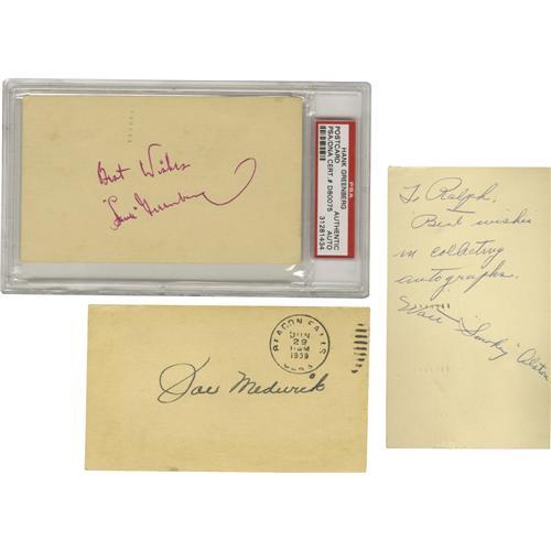 <B>1930's-50's Hall of Famers Signed Government Postcards Lot of 6.</B></I> Collection of a half dozen GPC's skews heavily toward the Dodgers, with fantastic 9/10 and better ink signatures from Koufax (personalized, PSA slabbed), Drysdale, Reese, Alston (personalized, signed with "Smokey" nickname) and Medwick. Filling out the bunch is Hank Greenberg (PSA slabbed). <I>LOA from PSA/DNA. LOA from James Spence Authentication.</B></I><BR><BR><b>Shipping:</b> Sportscard (<a target="_blank" href="http://www.heritageauctions.com/common/shipping.php">view shipping information</a>)