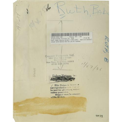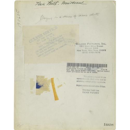 <B>1930's Babe Ruth Culver Service Photographs Lot of 3, Type 1.</B></I> Three razor-sharp portraits of the Babe in semi-formal attire appear to have been shot for promotional purposes of some sort. Each measures 8x10" in size, with CGC grades of Fine and Very Fine (2) respectively. Stamping on verso credits the images to "Culver Pictures, Inc." Confirmed as "Type 1" by PSA/DNA.