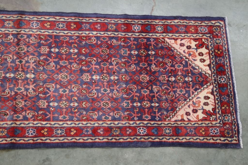 Included in this lot is a Bijar Persian hand knotted wool runner rug originating from the 1930's. The rug features a fine detailed design, bright colors, and a tight weave. The Bijar Persian rugs are hand woven in the town of Bijar and the surrounding villages located northwest of Iran in the Kurdistan province. The Bijar rugs are known for their high durability and compact weave. The piece displays a wonderful tight geometric floral pattern, with the border showing floral designs. The piece shows a tight weave with colors of red, blue, orange, white, and tan. The piece shows good condition overall, with little wear and use. The rug measures 39" wide by 119" long.
