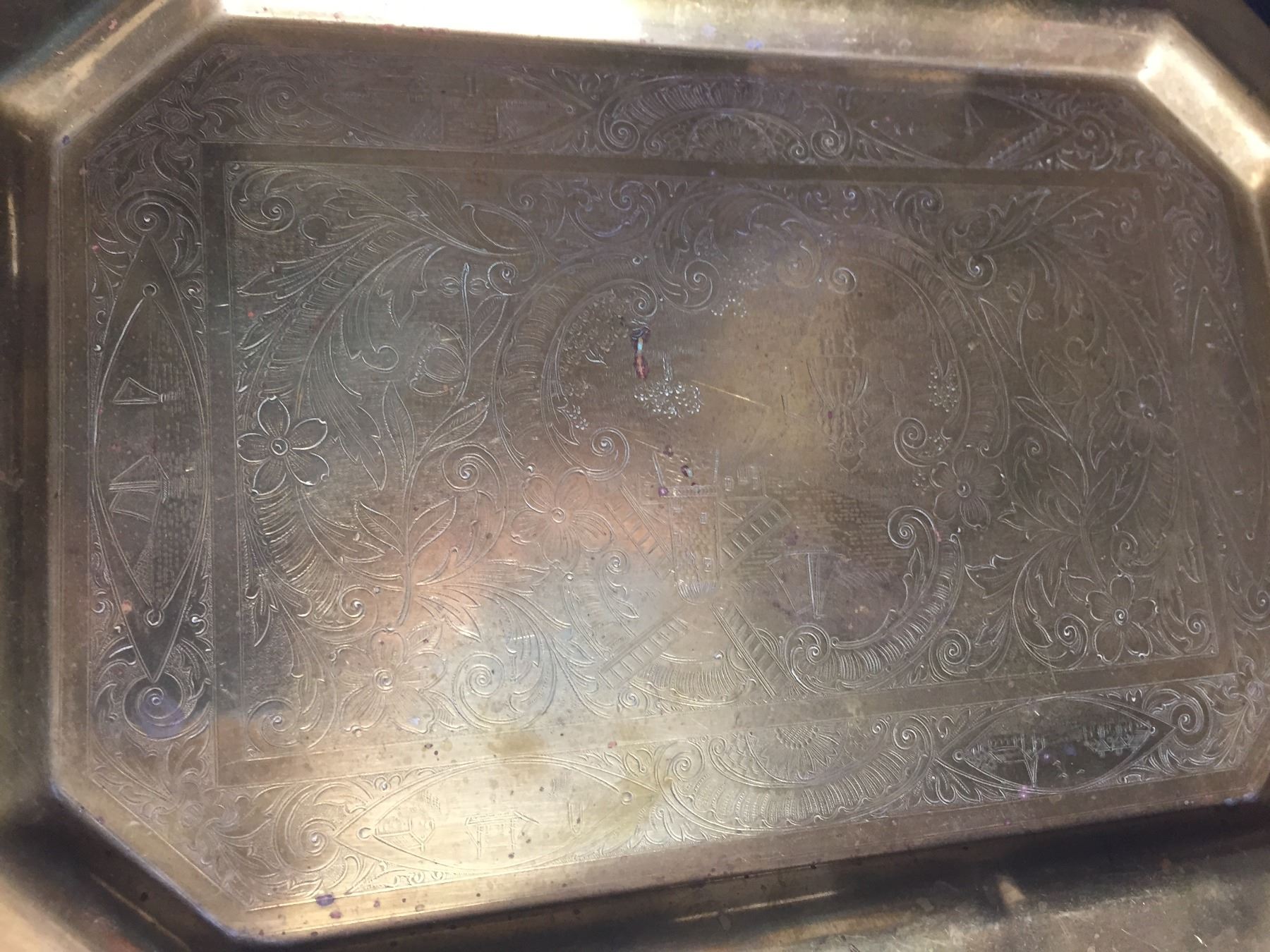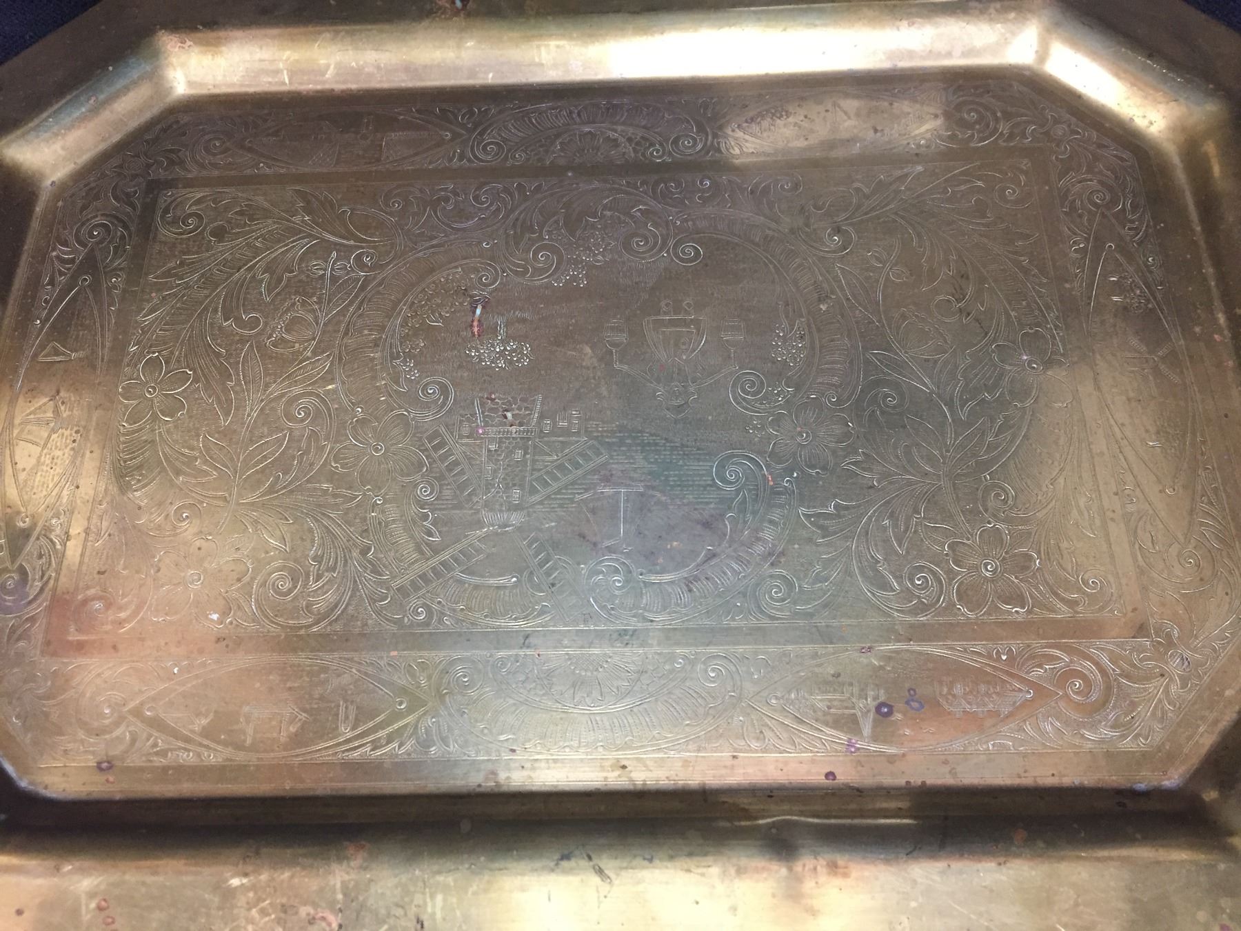 1930's Brass Tea Tray with Engraved Dutch Scene