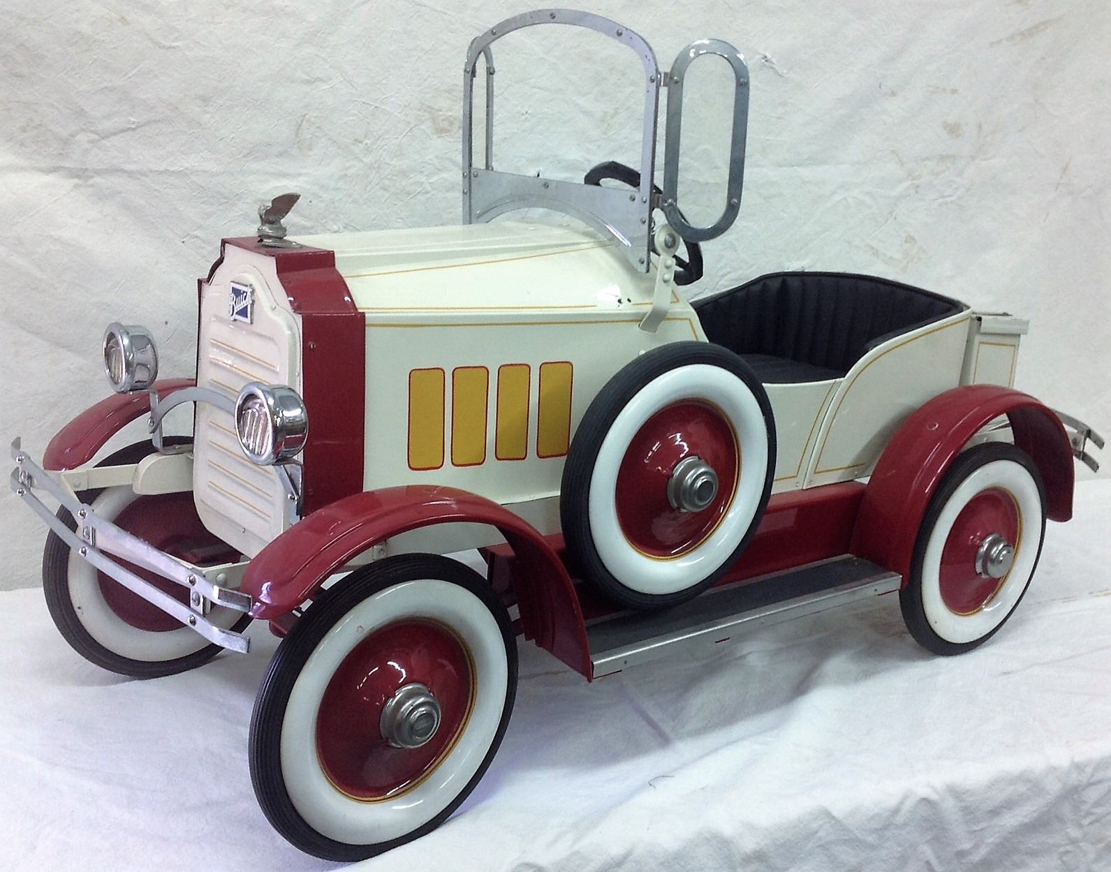 1930's Buick Pedal Car with Spring Suspension Enamel Radiator Emblem & Radiator Cap. Broken wing on cap