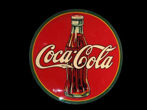 1930's Coca-Cola 4' round sign w/ Logo over Bottle