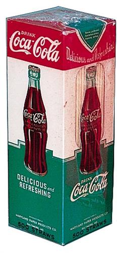 Great bottle on all 4 sides including cutaway on front showing the unmarked plain original straws. A few bends and creases, light-med soiling. Cond. 7.0-7.5, but displays much better.