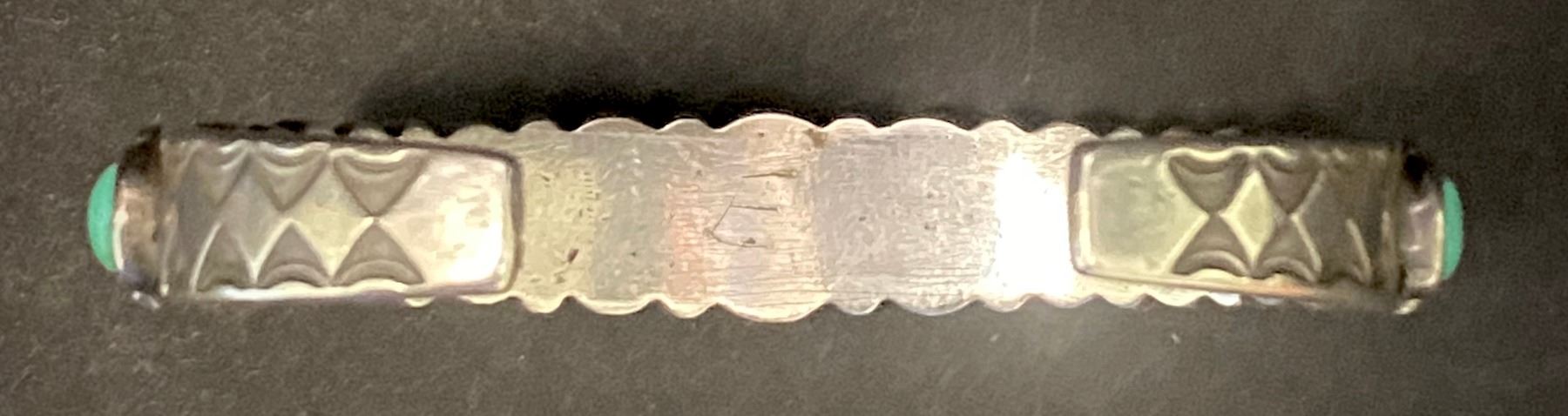 Bracelets measurements are opening, inside circumference, height. Weights are in Grams and are weighed to the best of our ability. The term signed means that, in our opinion, the signature is by the artist. All dating, Turquoise and hallmark attributions are to the best of our knowledge. Attributions are subjective and should be taken as such. Attributions in the description of any lot is left to the buyer to determine accuracy and the gallery is not responsible for any errors or omissions.