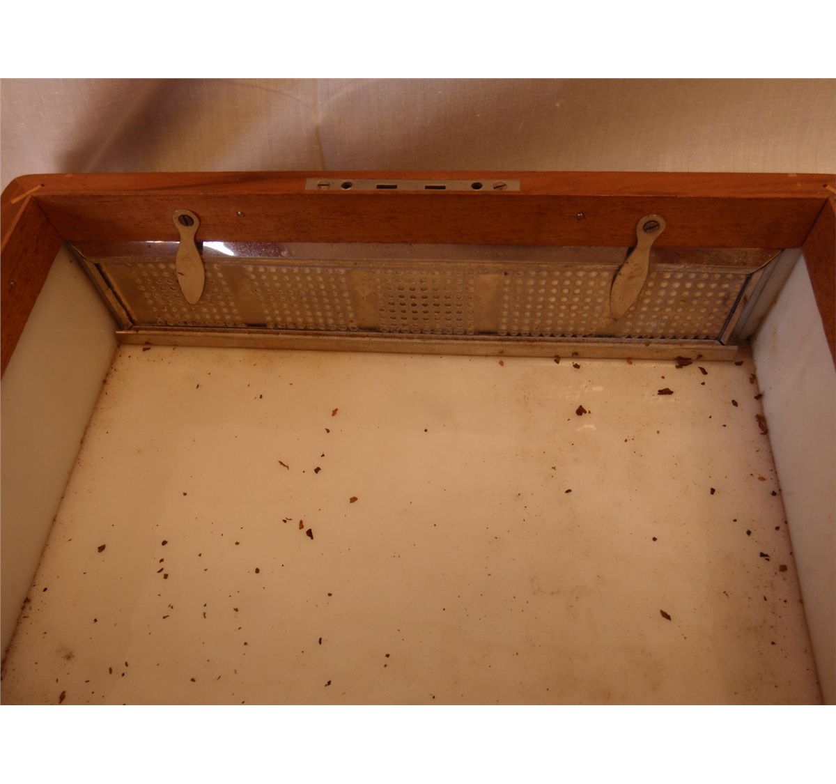 Spanish kiln dried cedar interior trim with Milk Glass Panels. Humidifier runs length of inner front face. Measures 11 1/2" x 7 1/2" x 4 1/2" Shipping on this lot: $15.00. Additional Shipping Charges for Lots sent outside of the U.S