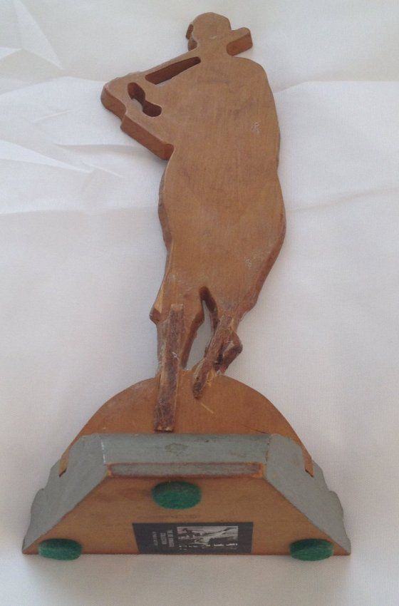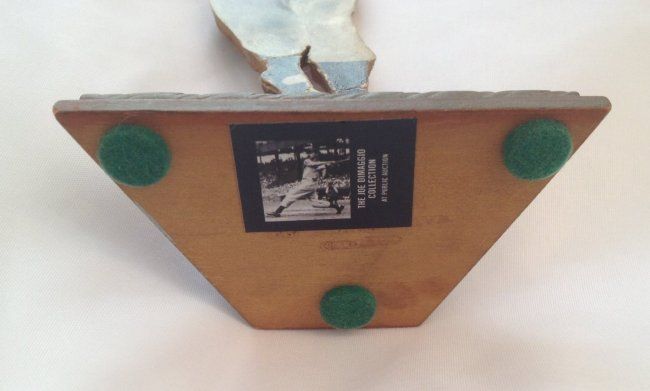 Famous photographer George Burke created these trophies for players. George Burke in the 1930's made these statues and he ONLY presented them to the players themselves, they were not available for sale. There is a stamp of Burke (1930's stamp) on the bottom of the base but Hunts covered it with the DiMaggio sticker but it is good because at least that further proves that DiMaggio owned it. This statue is 9 inches high, the base is 4.5 inches wide and 3 inches long.