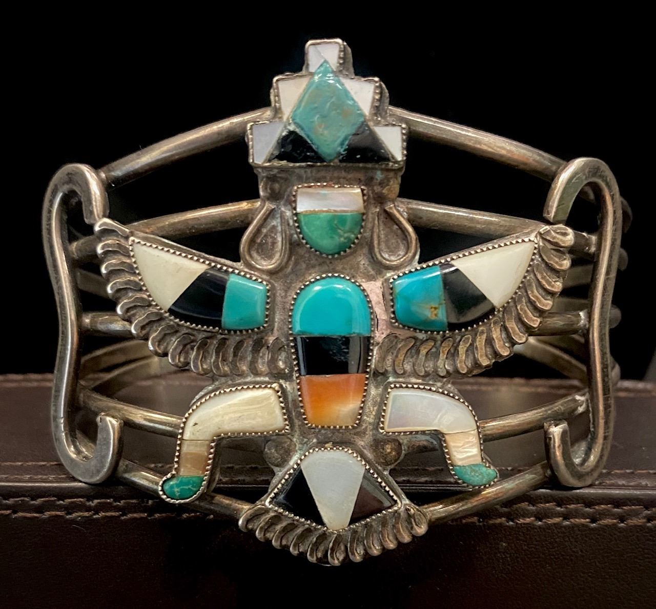 1930's Knifewing Channel Inlay Cuff by unknown Zuni Artist 2 3/8"H X 5 3/8" inside X 1 3/4" opening 50 grams