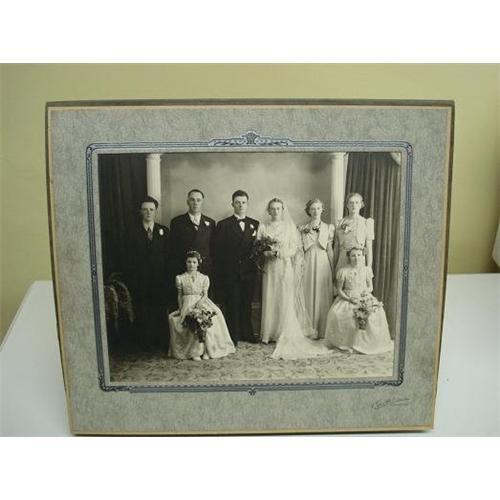 WONDERFUL OLD WEDDING PHOTO, DEPICTING LOVELY BRIDE AND GROOM AND FEW OTHER PEOPLE, as per images - This is large photo incased in a special and attractive cardboard stand-album., Excellent condition - Measuring about 12 1/2 inch x 11 inchm US Buyer to pay 7.00 for shipping plus insurance.THANKS.