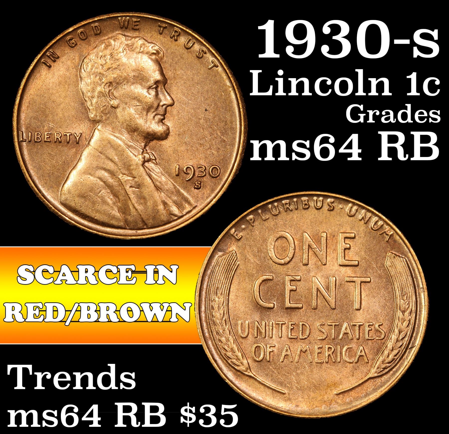 1930-s Lincoln Cent 1c Grades Choice Unc RB.