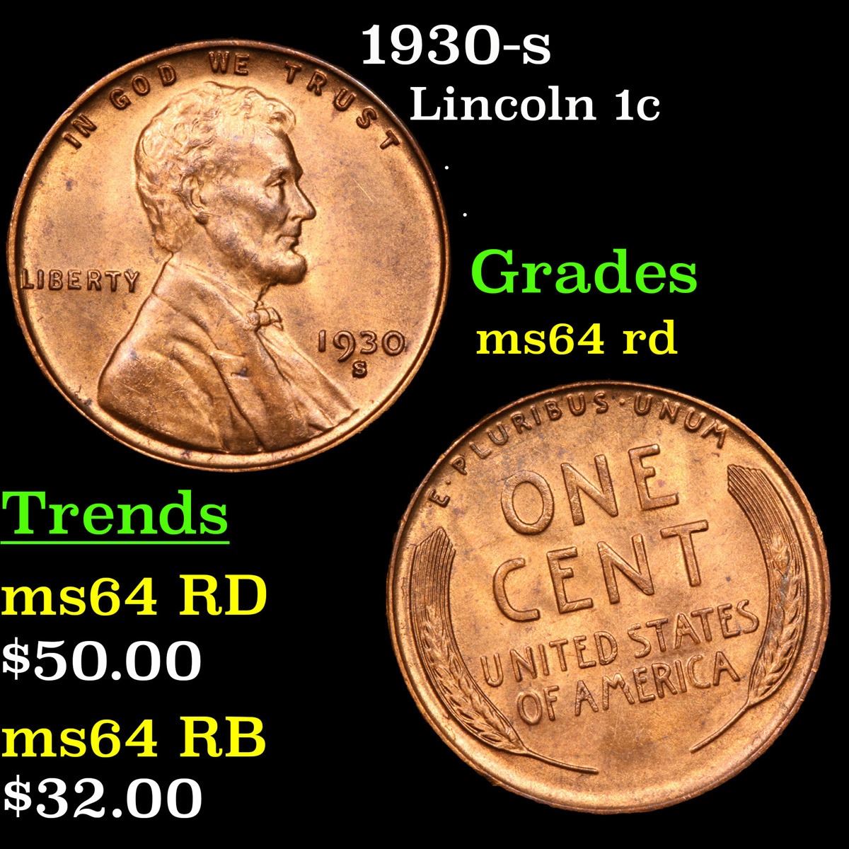 1930-s . . Lincoln Cent 1c Grades Choice Unc RD.