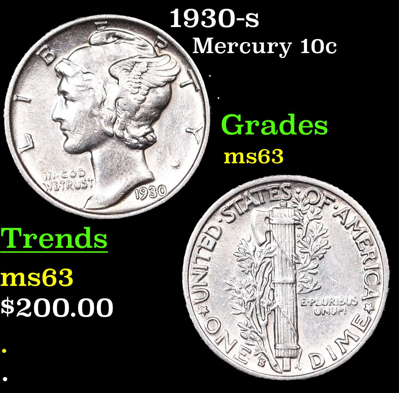 1930-s Mercury Dime 10c Grades Select Unc.