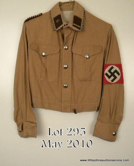 1930's SA Service brownshirtcomplete with unit collar insignia and party armband. With belt and cross strap. Excellent condition. Est. $500-900