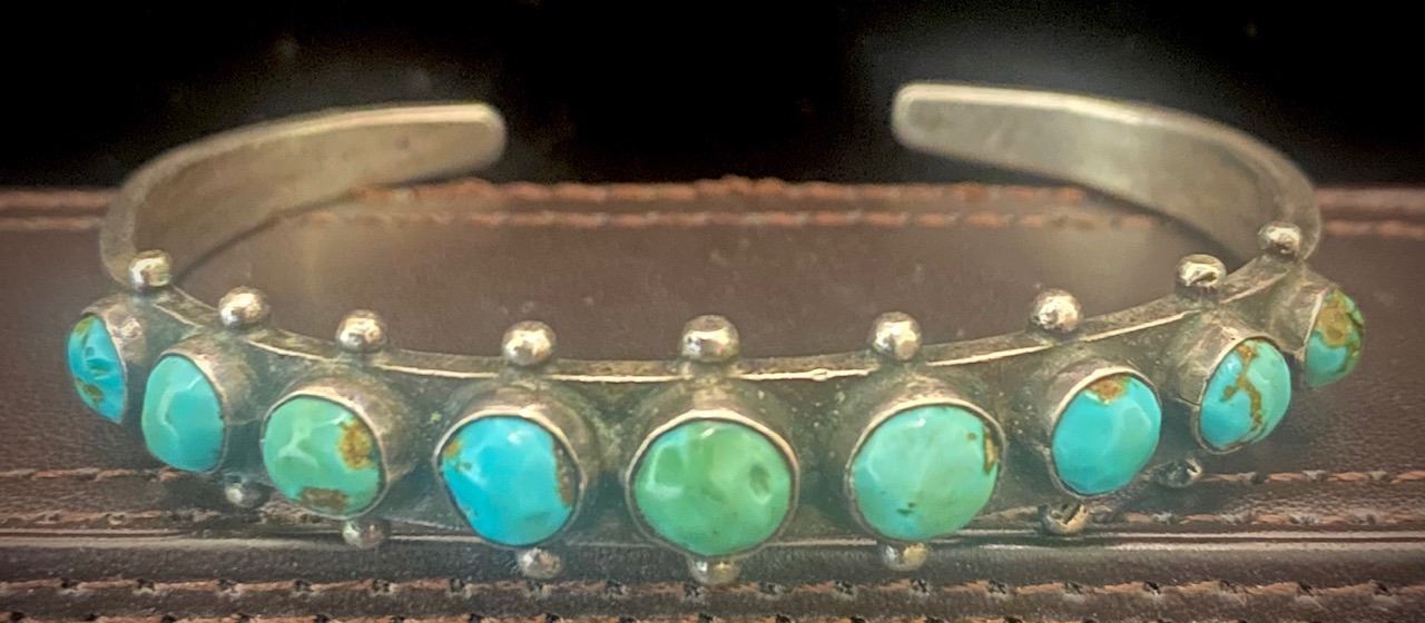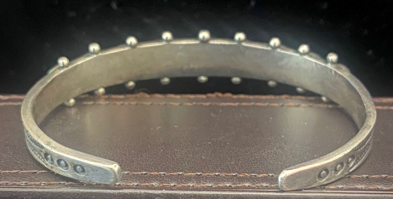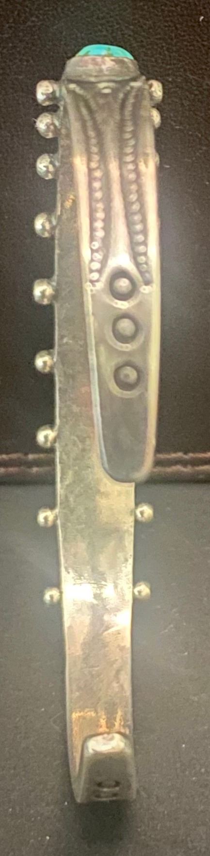 Bracelets measurements are opening, inside circumference, height. Weights are in Grams and are weighed to the best of our ability. The term signed means that, in our opinion, the signature is by the artist. All dating, Turquoise and hallmark attributions are to the best of our knowledge. Attributions are subjective and should be taken as such. Attributions in the description of any lot is left to the buyer to determine accuracy and the gallery is not responsible for any errors or omissions.