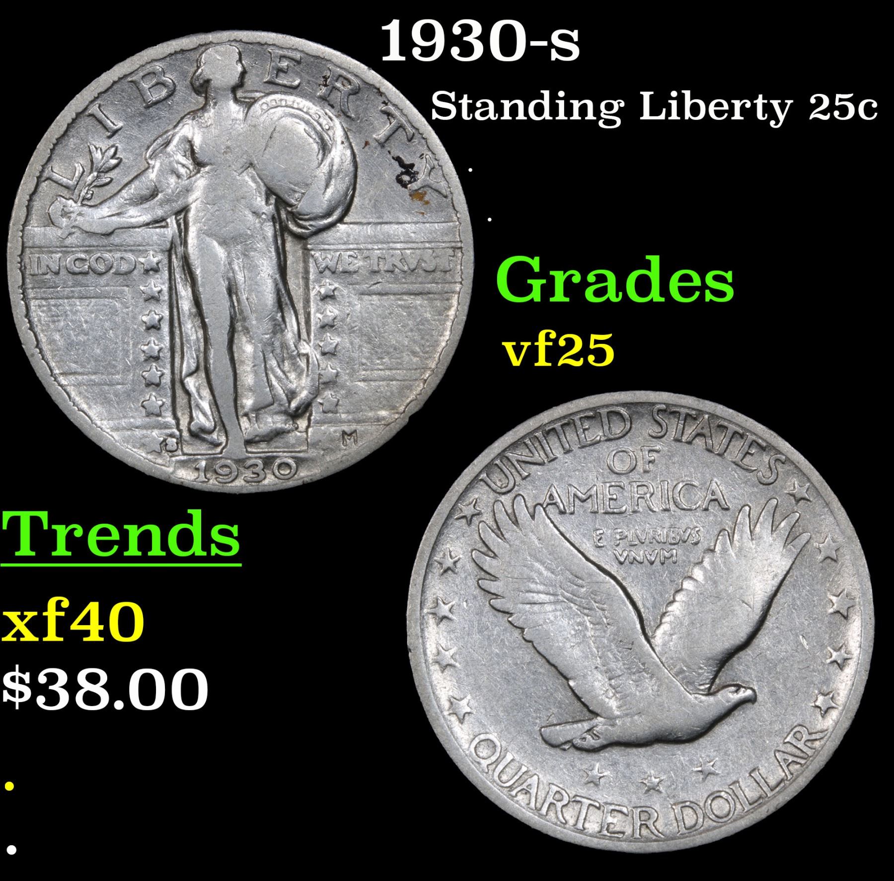 1930-s . . Standing Liberty Quarter 25c Grades vf+.