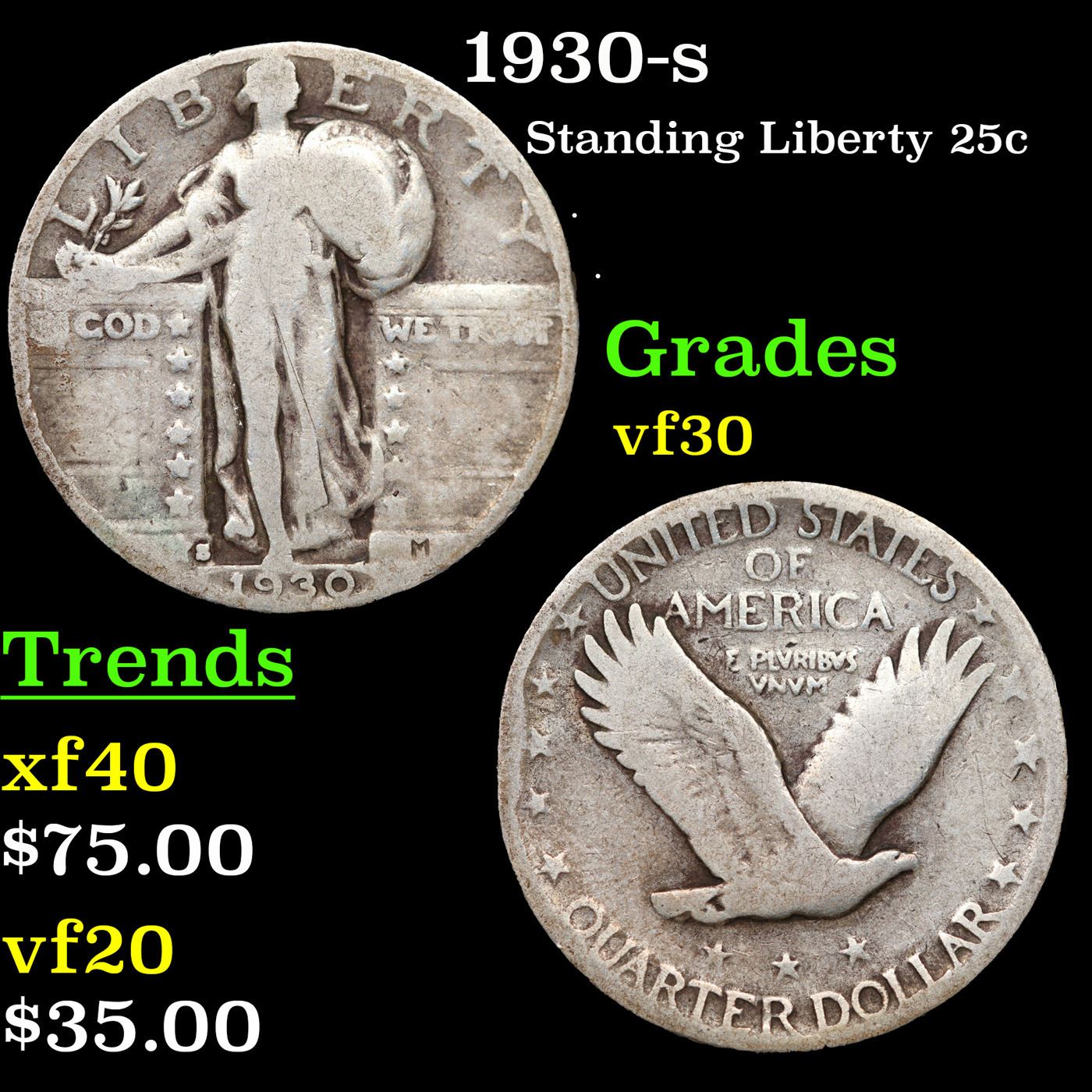 1930-s Standing Liberty Quarter 25c Grades vf++.