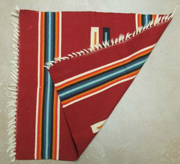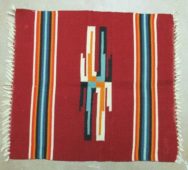 1930's Vintage Chimayo Table Weaving with fringe. Measures 20'X19''. SHI $15.