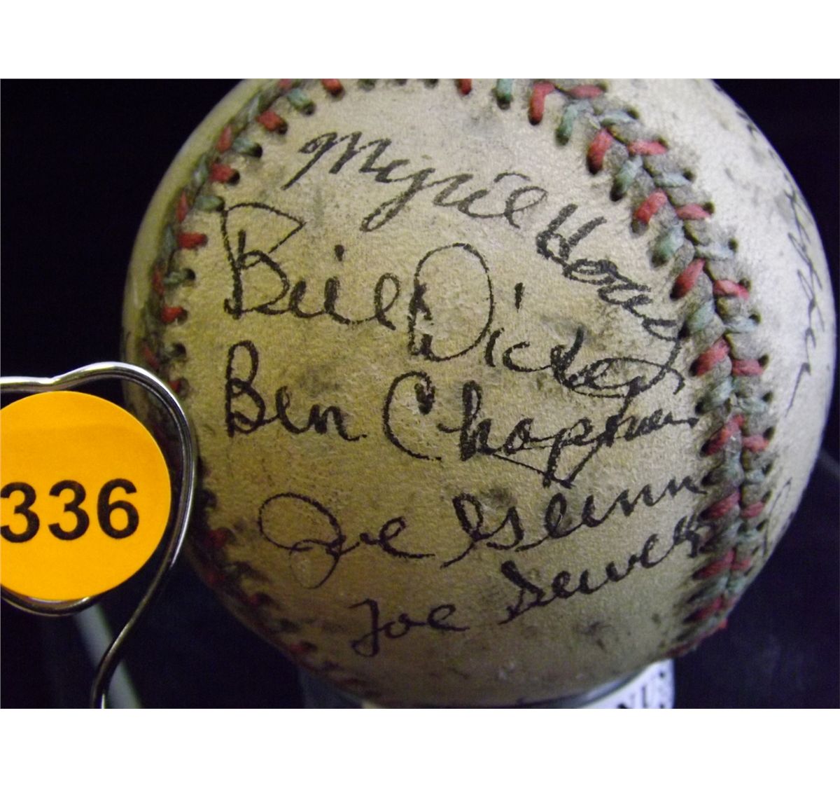 1930's Yankees Team Ball autographed by Frank Crosetti, Cy Perkins, Earle Combs, Same Byrd, Babe Rut