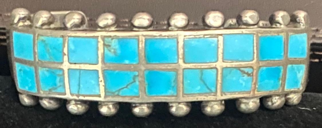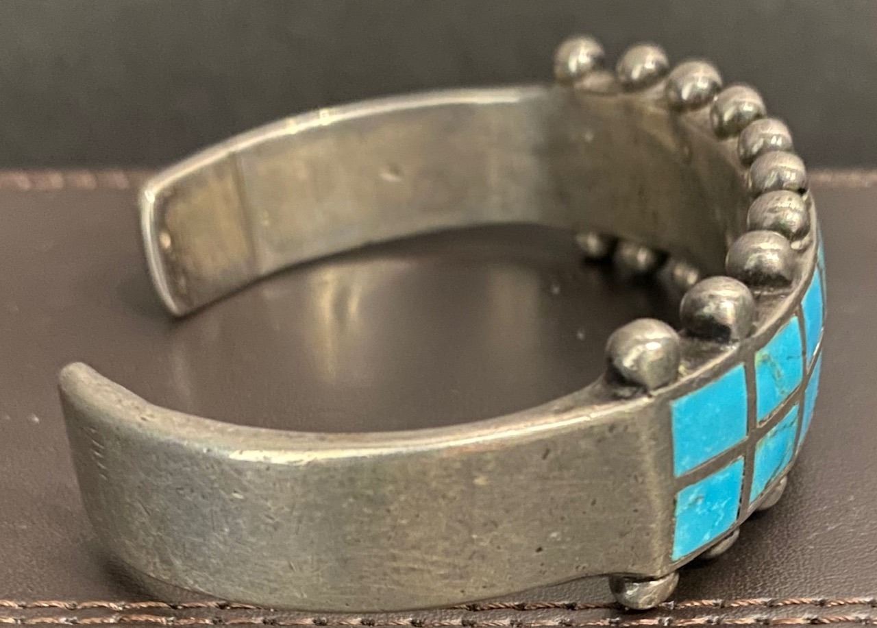 Bracelets measurements are opening, inside circumference, height. Weights are in Grams and are weighed to the best of our ability. The term signed means that, in our opinion, the signature is by the artist. All dating, Turquoise and hallmark attributions are to the best of our knowledge. Attributions are subjective and should be taken as such. Attributions in the description of any lot is left to the buyer to determine accuracy and the gallery is not responsible for any errors or omissions.