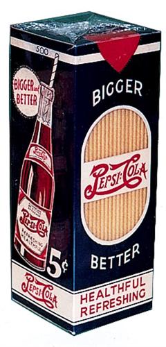 Beautiful box on 2 sides it shows the paper labeled 30's Pepsi bottle with the plain unmarked straws, original still inside. Cond. 9.0 with only light soiling
